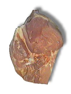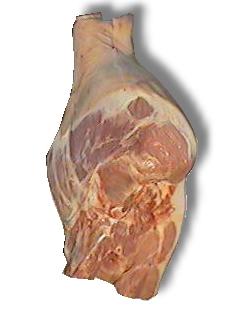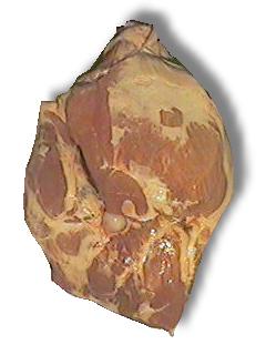 So sieht der Schinken aus wenn er in unserem Betrieb ankommt. Der Zuschnitt wird in Fachkreisen Hamburger Rundschnitt genannt, das Gewicht des Schinkens beträgt bis zu 15 Kg, das Gewicht des fertigen westfälischen Knochenschinken liegt zwischen 6 und 7 Kg. Bei der Anlieferung kontrollieren wir den ph-Wert und die Temperatur.